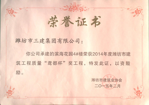 濱?;▓@4#樓榮獲2014年度鳶都杯獎(jiǎng)