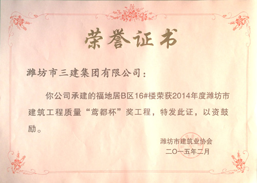 福地居B區(qū)16#樓榮獲2014年度鳶都杯獎